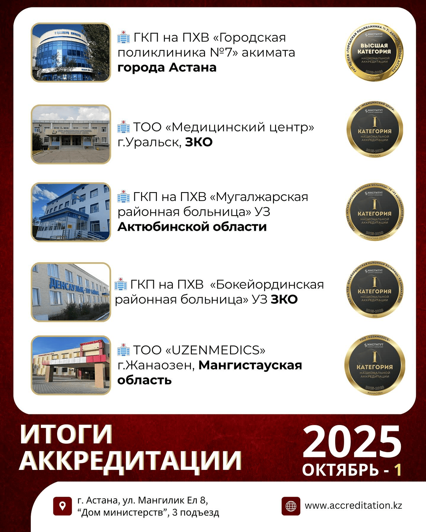 Алынған аккредиттеу санатына қарамастан, әрбір медициналық ұйым аккредиттеу туралы куәліктің бүкіл әрекет ету мерзімі ішінде аккредиттеуден кейінгі мониторингке жатады. Бұл процесс медициналық ұйымның қызметіне қатысты ықтимал шағымдарды анықтау мақсатында бұқаралық ақпарат құралдарында және әлеуметтік медиа платформаларындағы жарияланымдарды талдауды, сондай-ақ аккредиттеу органынан тікелей түсетін арнайы сұраныстарды өңдеуді қамтиды.